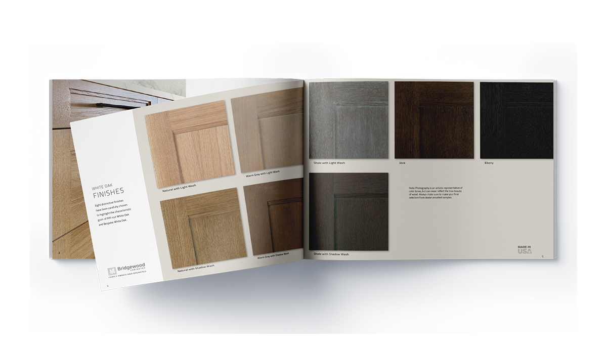 The White Oak brochure displays our beautiful line of White Oak cabinetry and explains the two saw patterns we offer. Click here to preview.